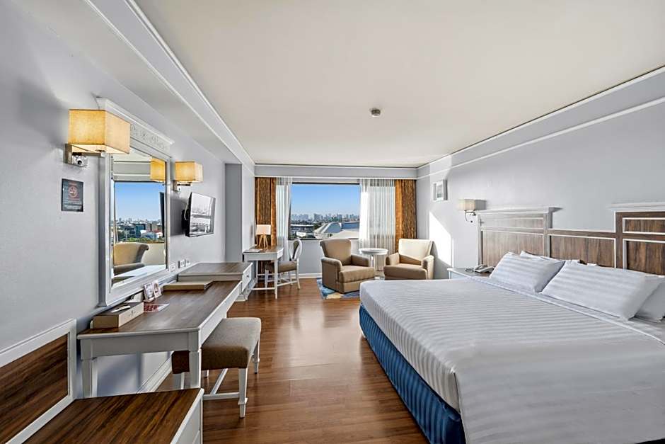More luxurious, spacious and air-conditioned room is equipped with LCD flat-screen smart TV, a seating area and a wardrobe, fridge, bathrobes, hair dryer, and slippers are offered . Shower facilities are included in bathroom. Tea, coffee maker and four drinking water bottles are available.