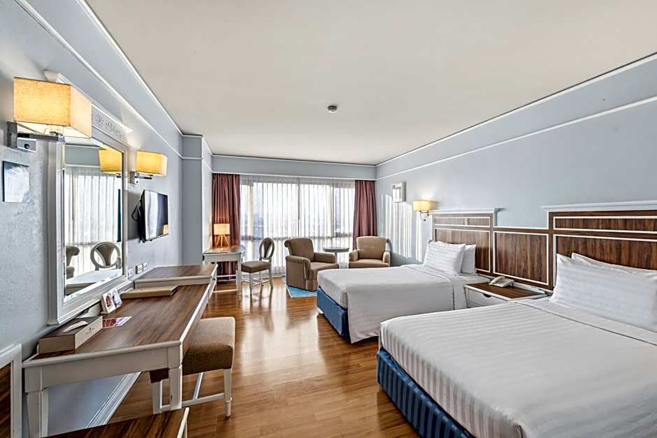 On-site dining brings two family-friendly options to life. PAVILION serves Thai, Asian, and European fare, while SUKHOTHAI offers American, Thai, Local, and Asian dishes. The outdoor pool—free to use—comes with a shallow end and scenic views, and there's a dedicated kids’ pool so younger swimmers can join the fun as well.